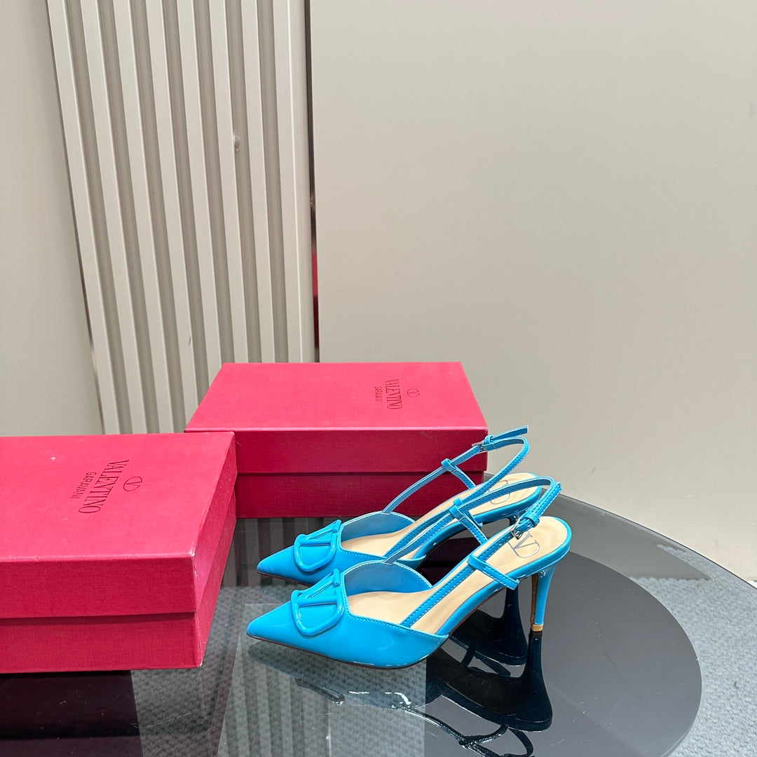 VLOGO SIGNATURUE CERULEAN BLUE PATENT LEATHER SLINGBACK PUMP 80MM