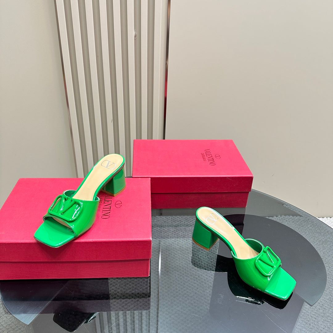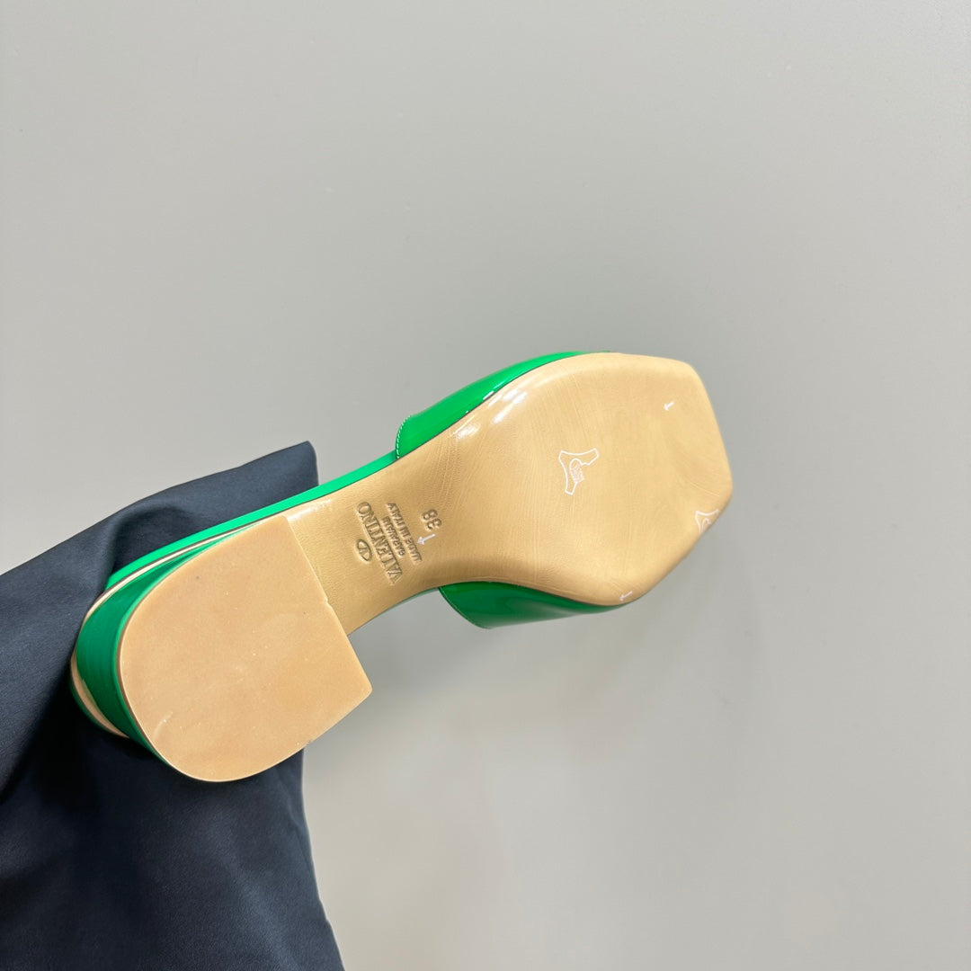 Vogo Signature High Shine Open Toe Sandals In Green Glossy Lambskin 839833