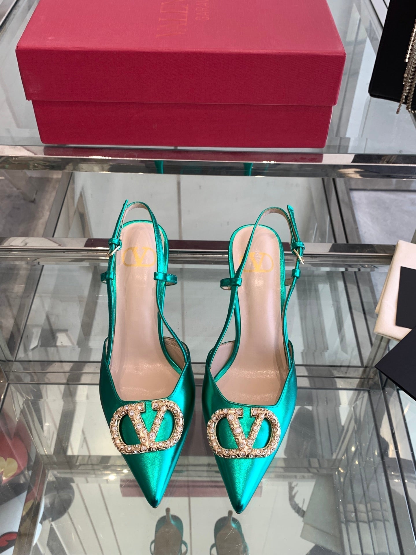 VT 25 High Heels Slingbacks Emerald Green Cowhide 292338