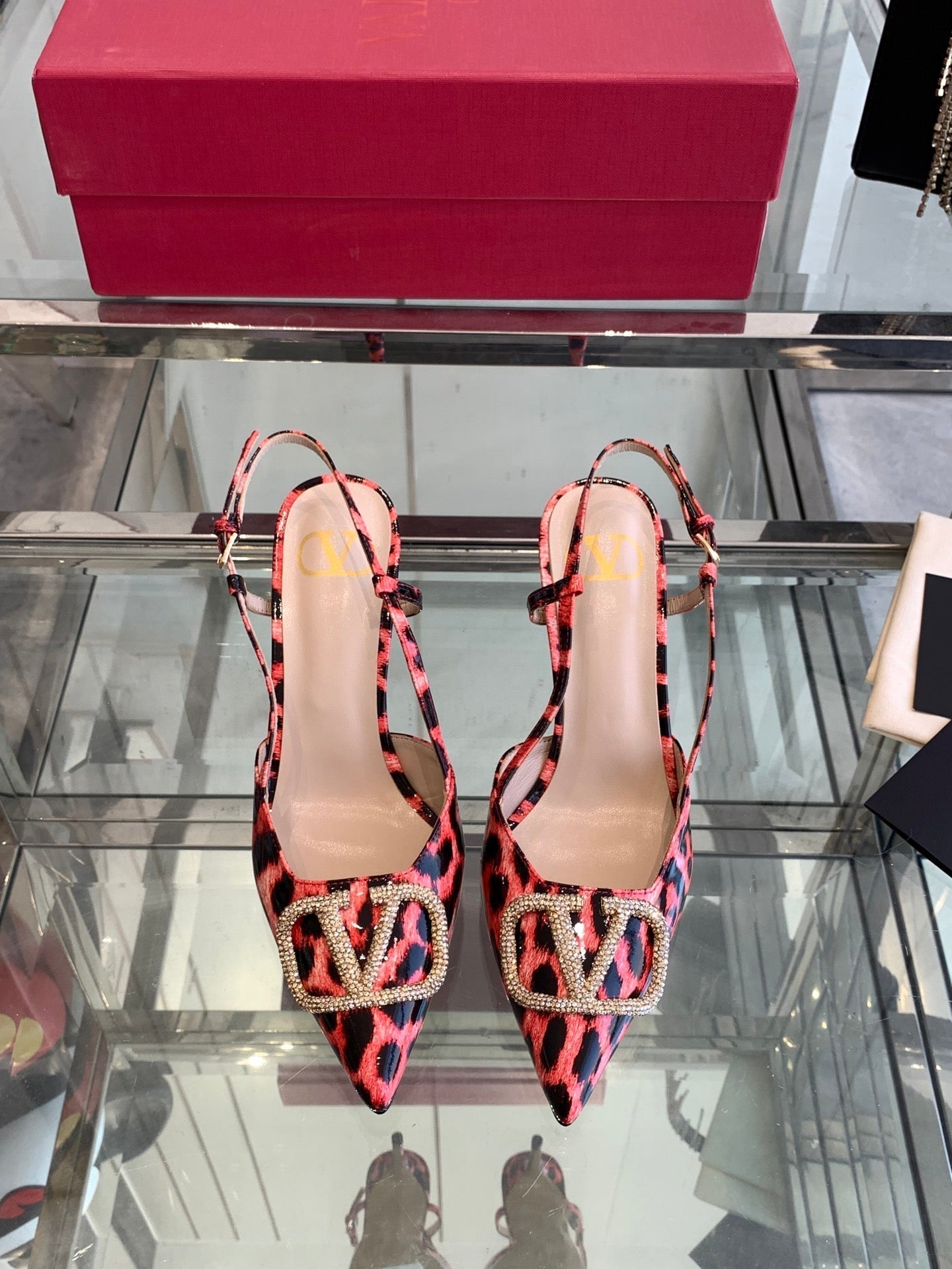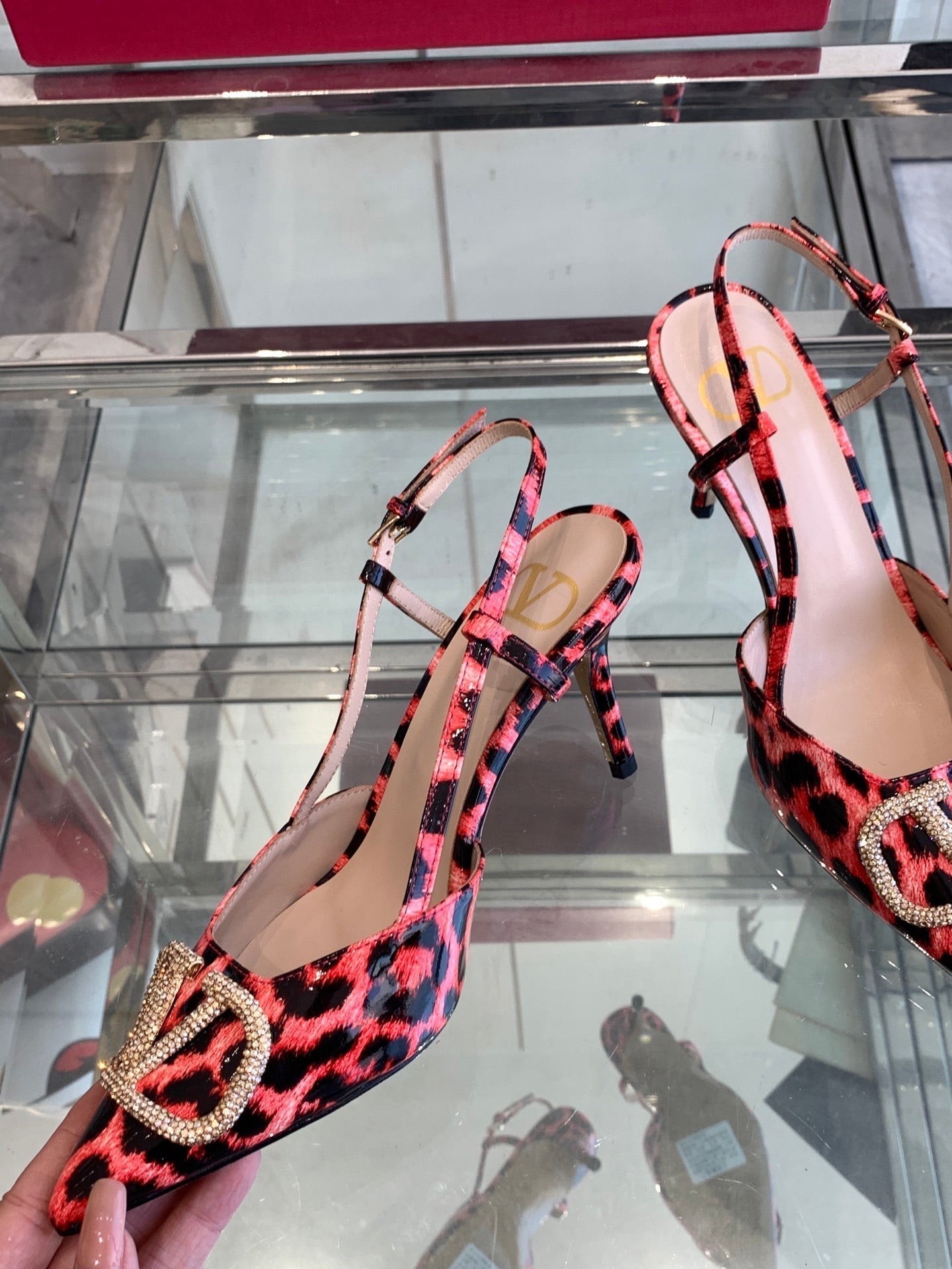 VT 25 High Heels Slingbacks Red Leopard Cowhide 292346