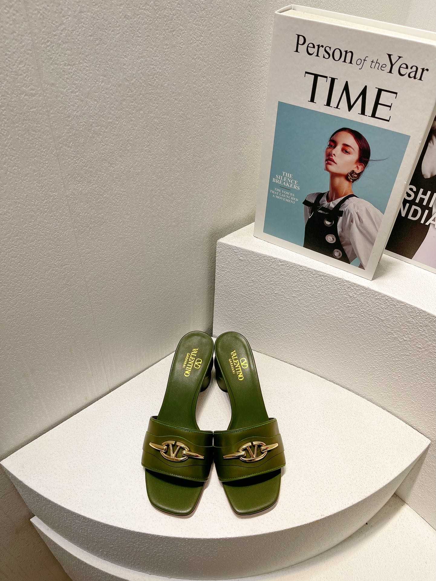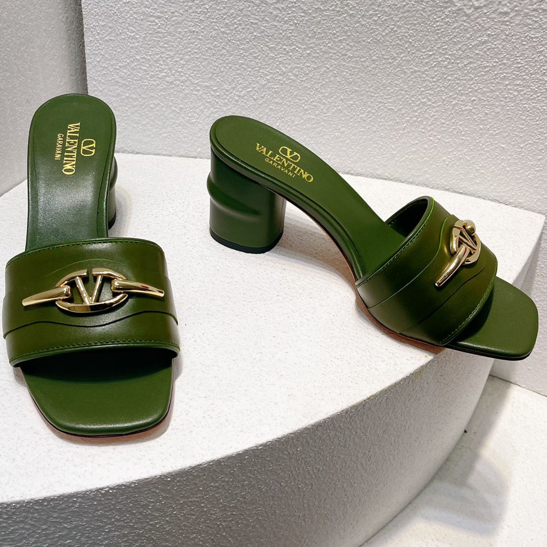 VT Leather Mules Dark Green Cowhide 292871
