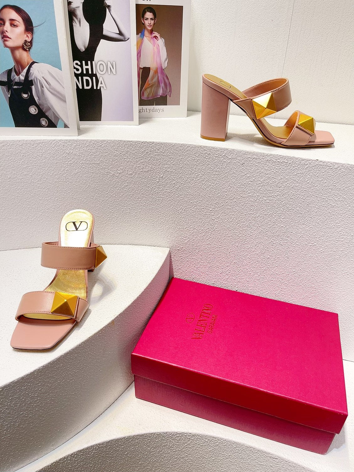 VT One Stud Leather Sandals Pink Cowhide 292756