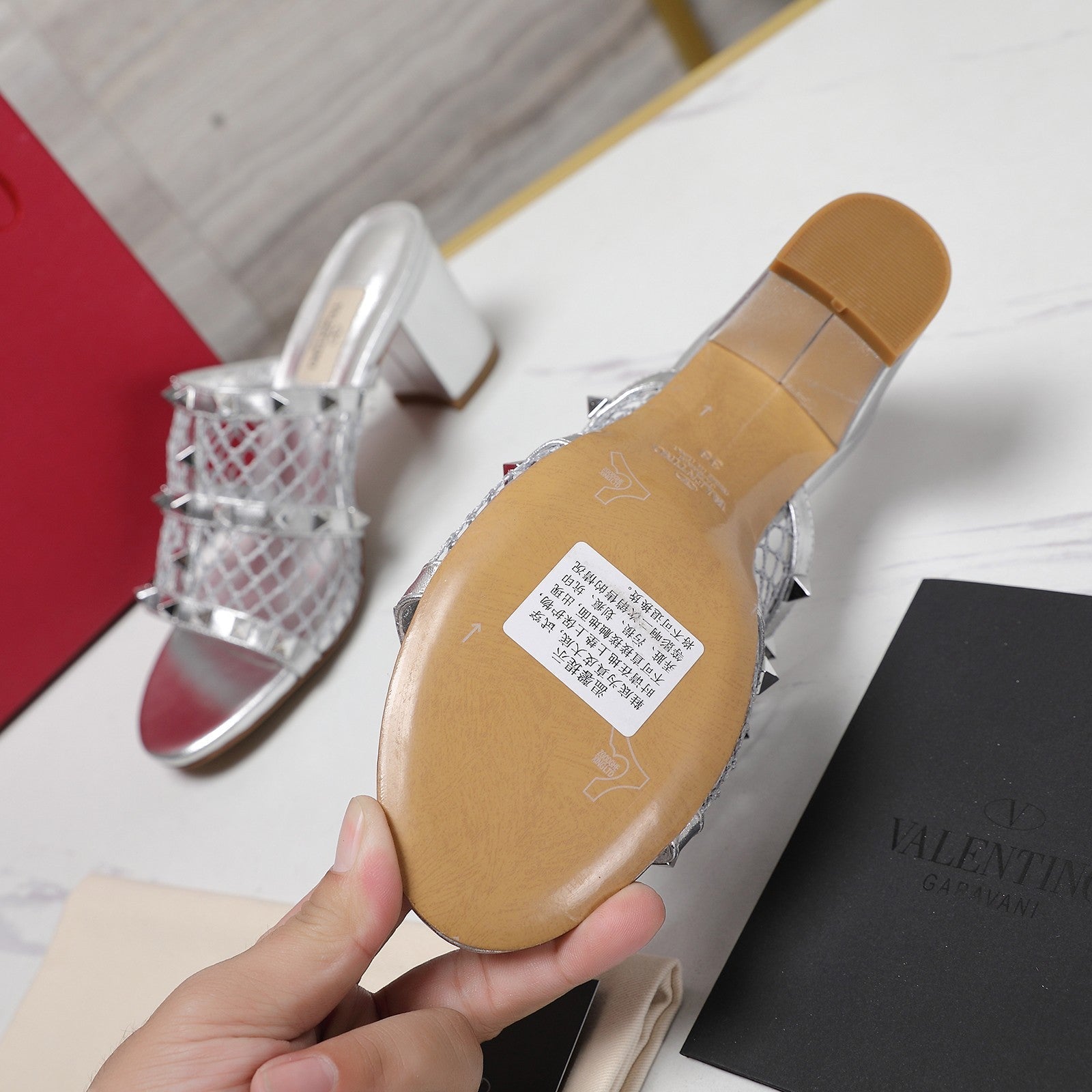 WOMEN'S BLACK ROCKSTUD SILVER MESH SLIDER SANDAL WITH MATCHING STUDS 65 MM