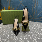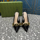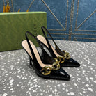 WOMEN'S SLINGBACK 10.5 CM IN BLACK CALFSKIN WITH GOLD HARDWARE