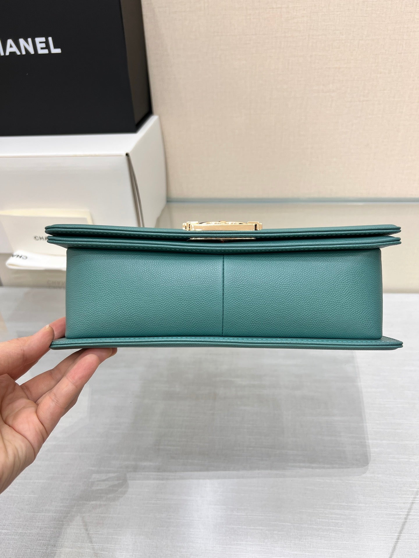 BOY BAG MEDIUM 25 EVERGREEN CAVIAR GOLD HARDWARE