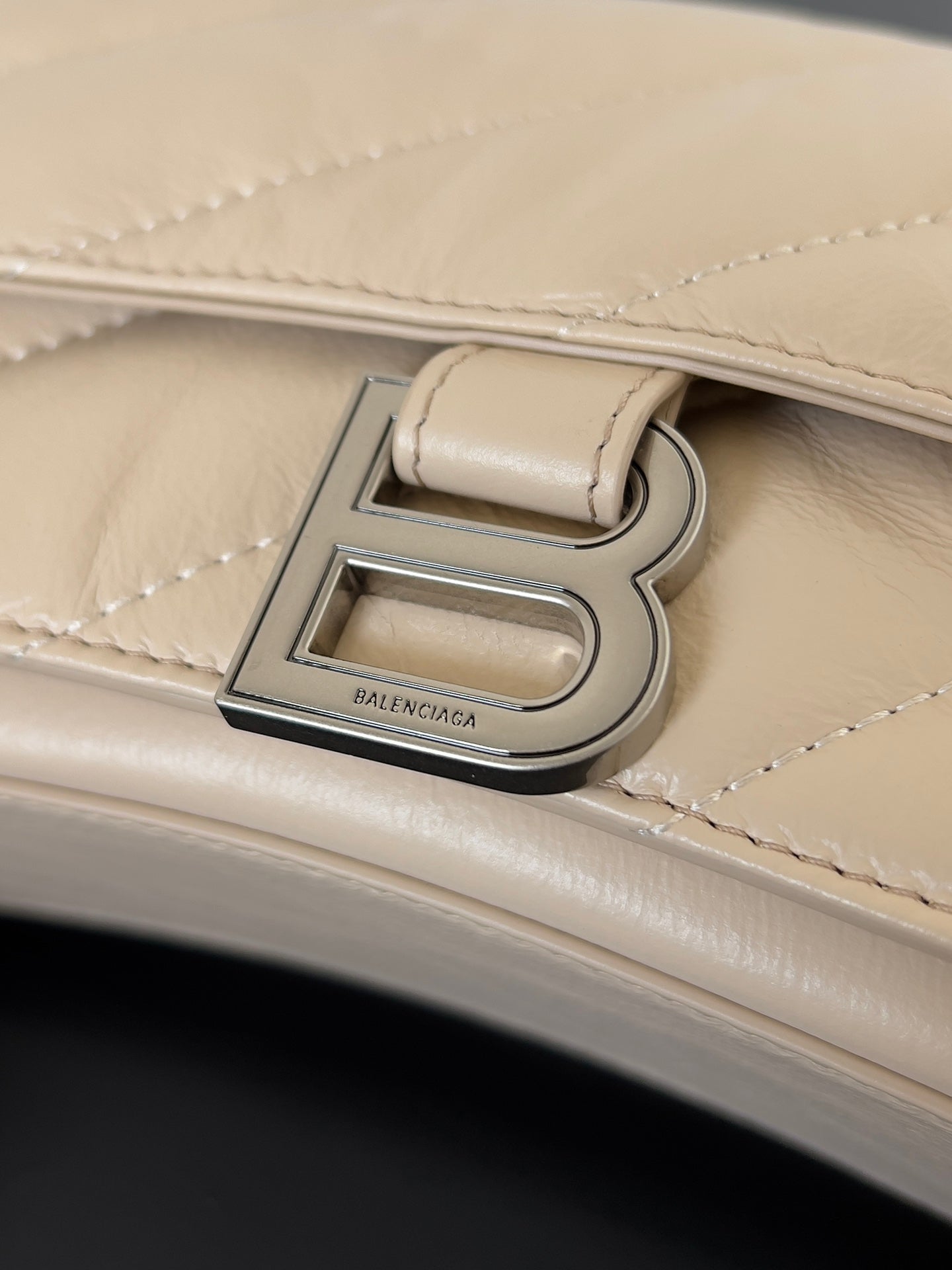 CRUSH CHAINED BAG 25 IN BEIGE QUILTED LAMBSKIN SILVER HARDWARE