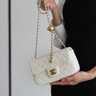 FLAP BAG 20CM WHITE LAMBSKIN GOLD HARDWARE