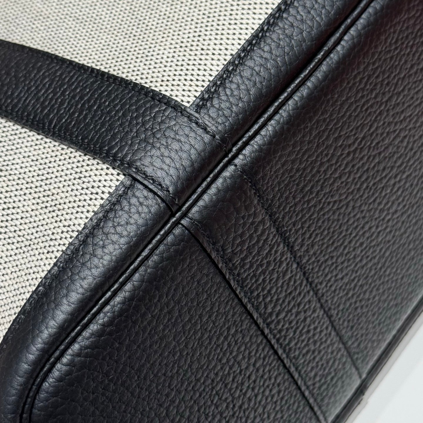HM Garden Party 30cm Bag Black Togo Dark Grey Canvas