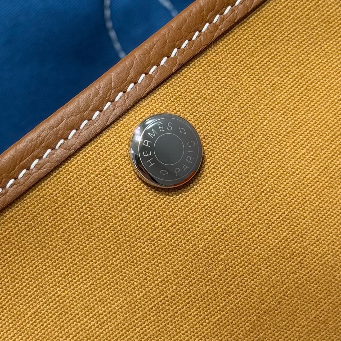 HM Garden Party 30cm Bag Gold Togo Dark Beige Canvas