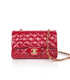 MINI RECTANGLE FLAP BAG 20CM RED PATENT CALFSKIN GOLD HARDWARE