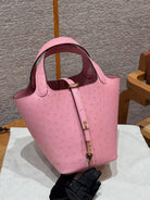 Picotin Lock Pink Ostrich Gold Hardware