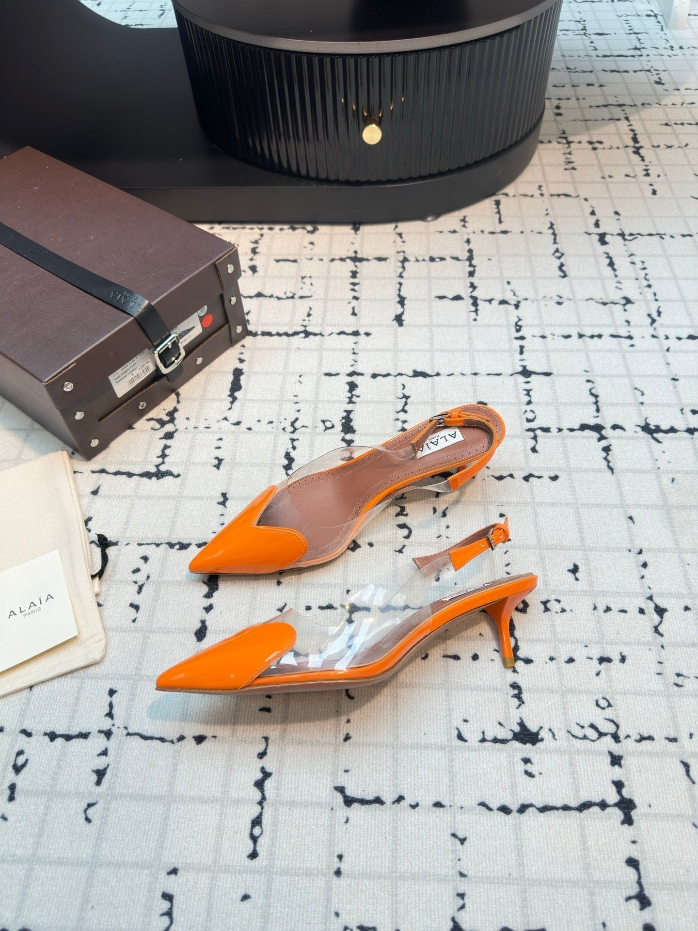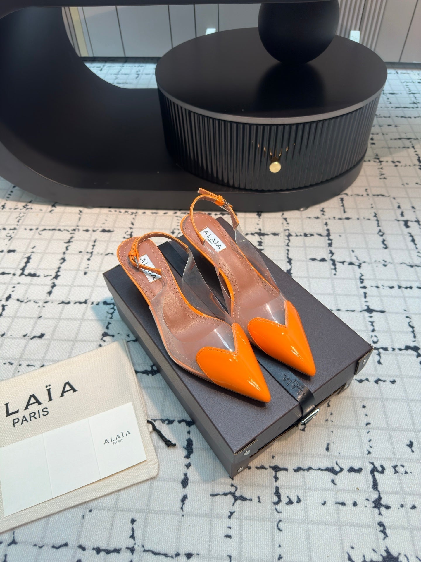 Alaia Heart 50mm Heels Slingbacks Orange Sheepskin 810210
