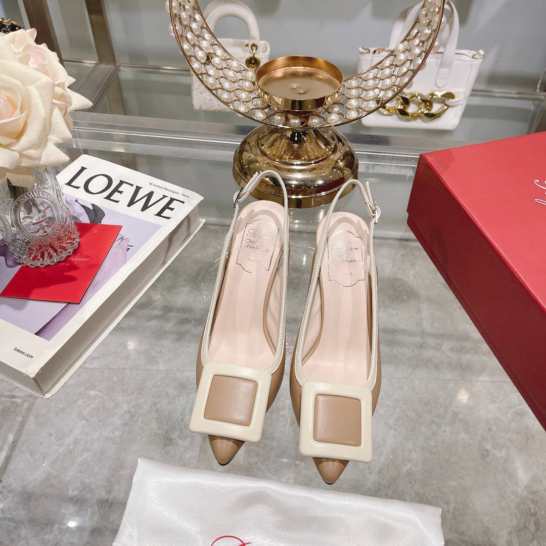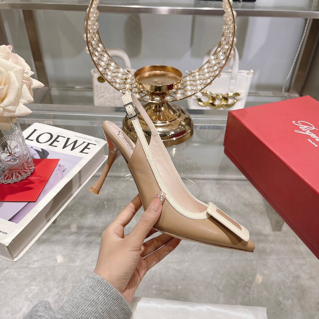 Belle Viv Metal Buckle Slingback Pumps 85 Camel Patent Leather