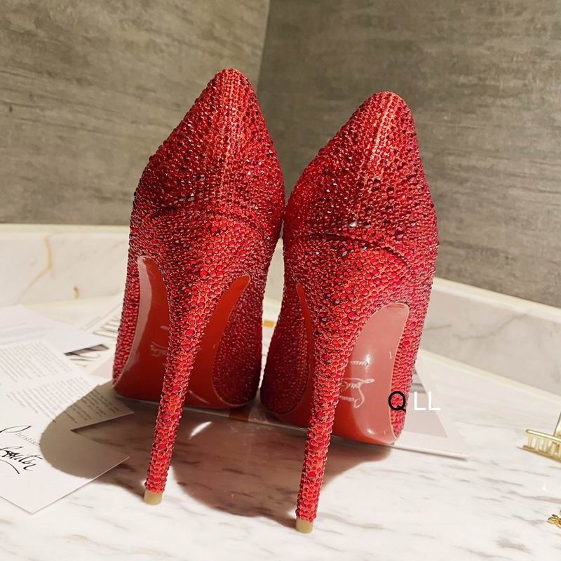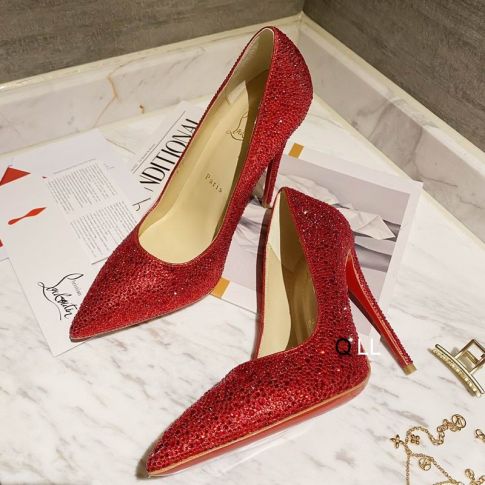 CL Kate Strass Degrade Pumps 100mm Suede Red
