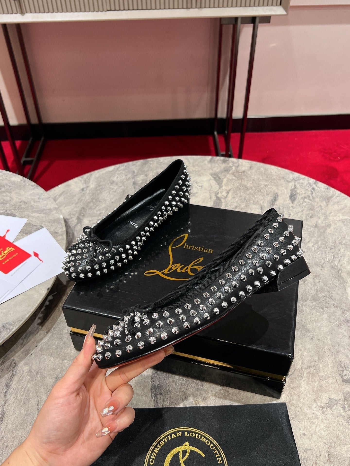 CL Sweetie Jane Spikes Ballerina Pump Nappa Leather Black