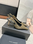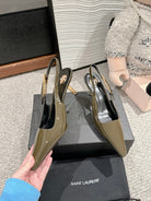 LEE SLINGBACK MID PUMPS IN ARMY GREEN SHINY CALFSKIN