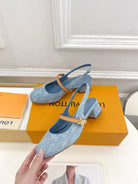 LV Romy Slingback Pump 35mm Light Blue Monogram Jacquard Fabric