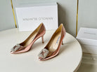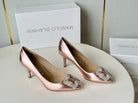 Manolo Diamond Buckle Pumps Pink Gold Mirror Cowhide 451181