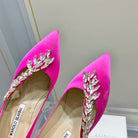 Manolo Wheat Ear Rhinestone High Heels Pumps Dark Pink Silk Fabric 327452