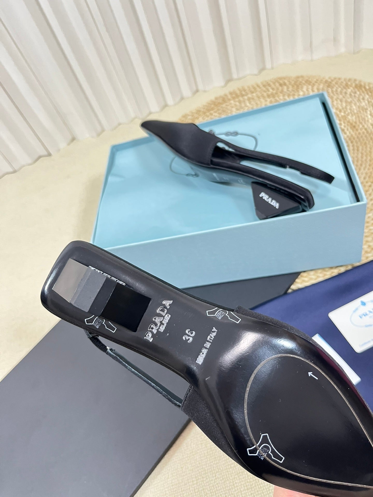 PRA POINTED TOE SLINGBACK PUMPS BLACK SATIN