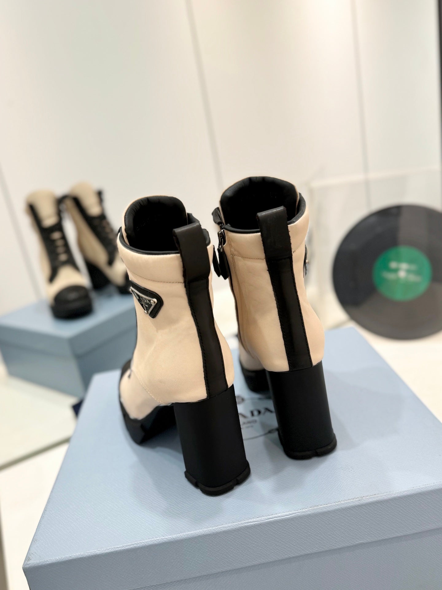 PRA RE-NYLON AND LEATHER BOOTIES PASTEL PINK