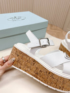 PRA WEDGE PLATFORM SANDALS WHITE CALFSKIN