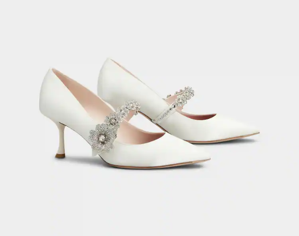 Roger Vivier Efflorescence Mary Jane Pumps 65m White Silk Blend Satin