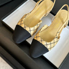 slingbacks flat beige calfskin black grosgrain embroidery