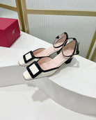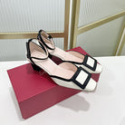 Trompette Metal Buckle Slingback Pump 45 Black White Patent Leather