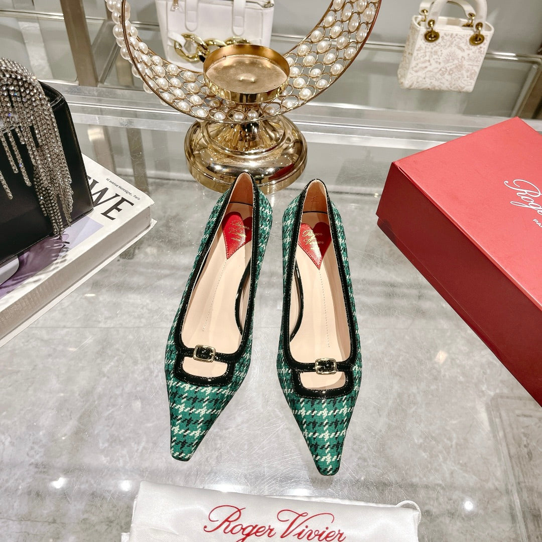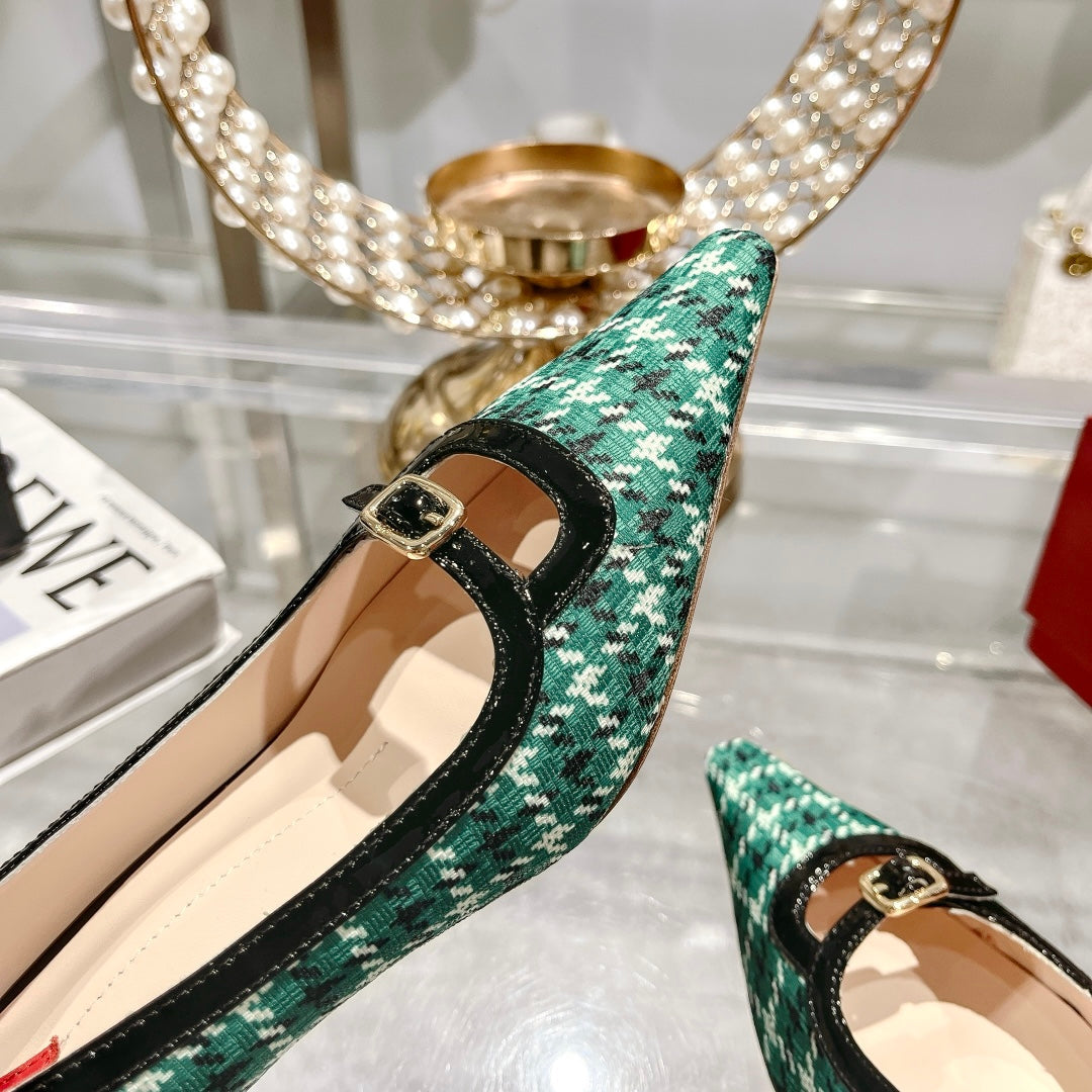 Viv Canard Pumps 55 Black Green Fabric