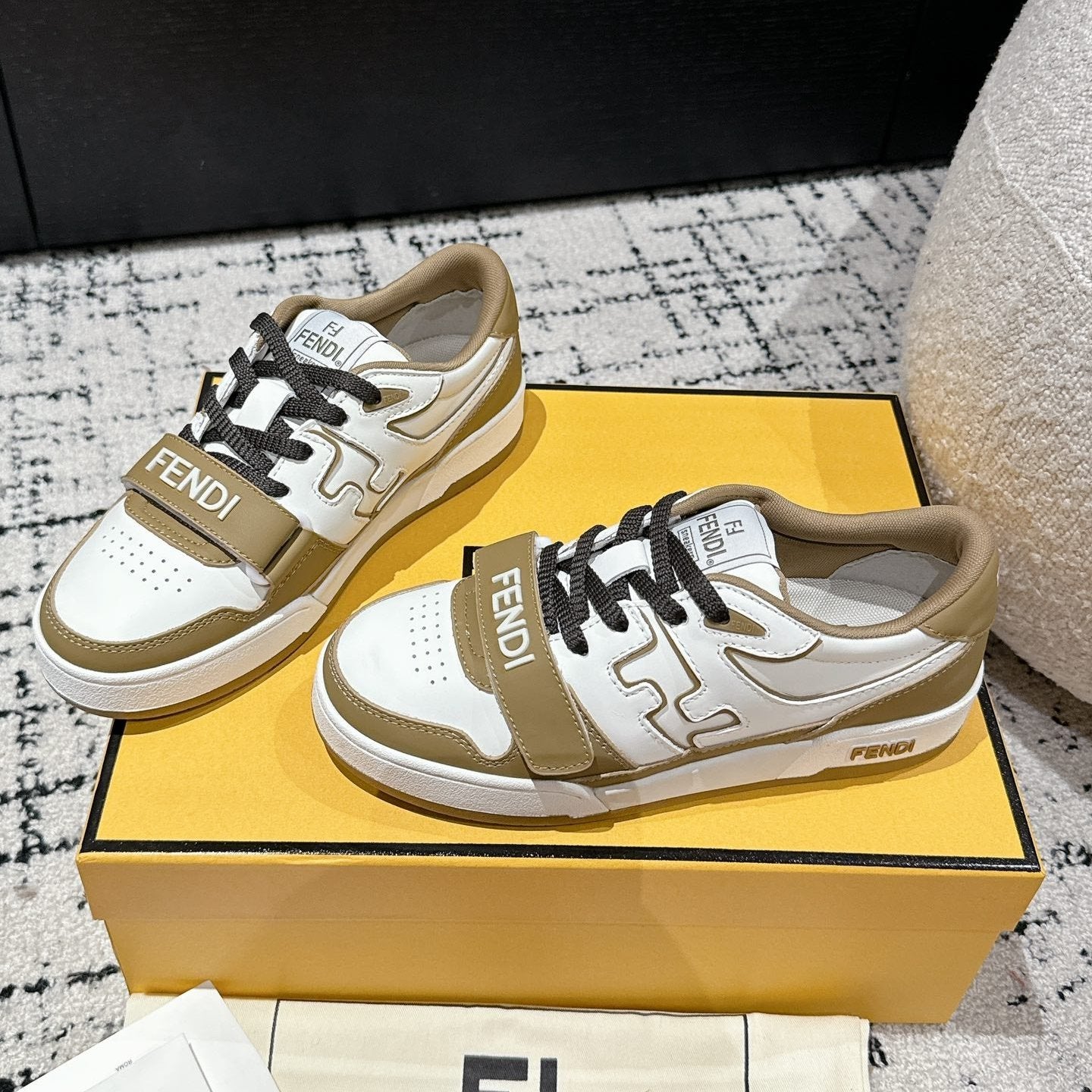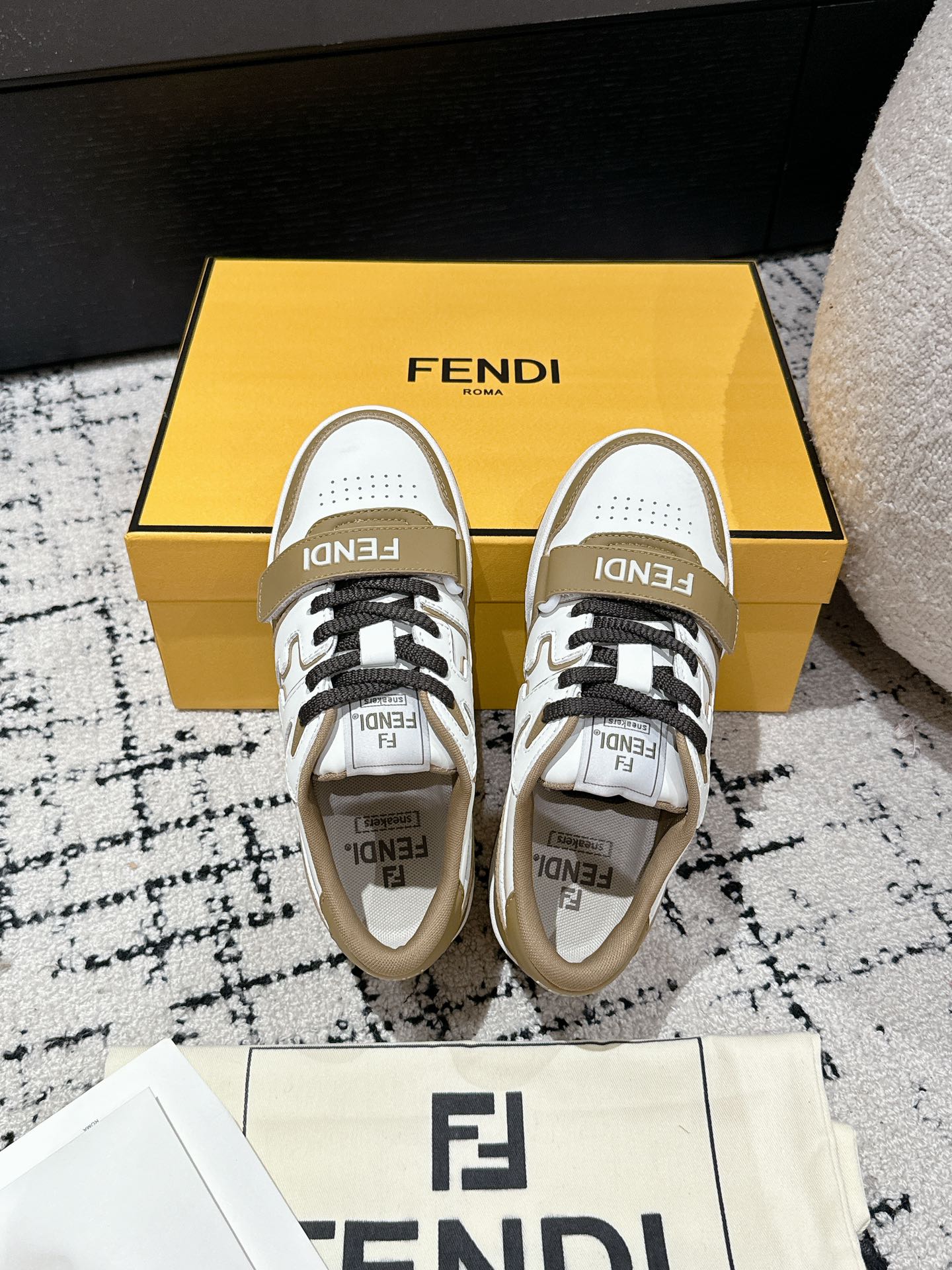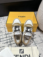 FENDI MATCH LOW-TOPS IN DARK TAN MIX WHITE CALFSKIN