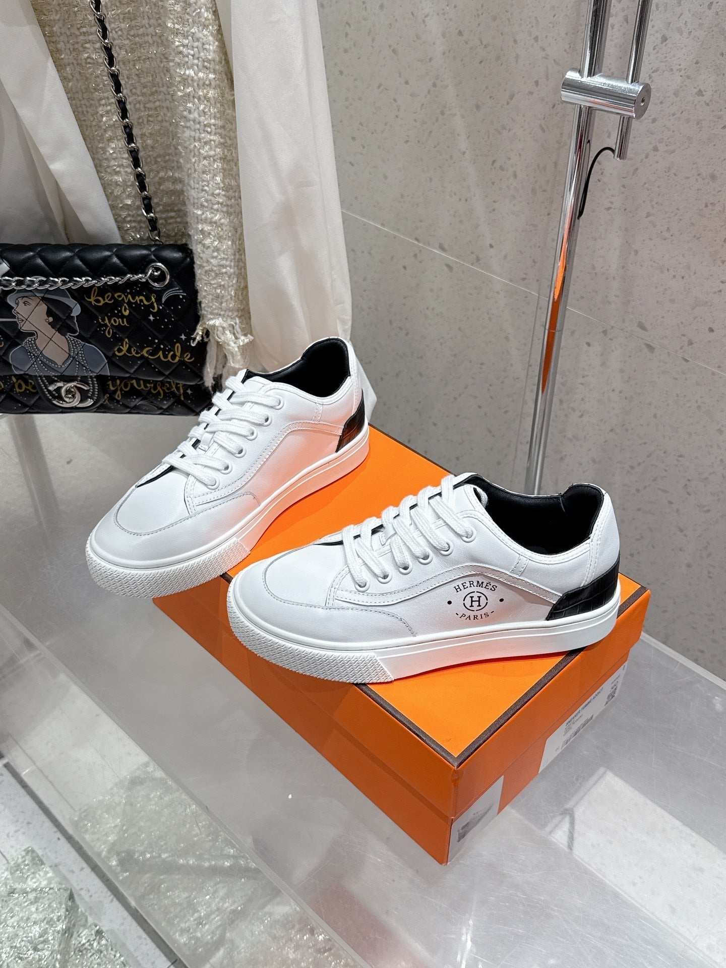 HM Get Sneaker White mix Black Cowhide 204748