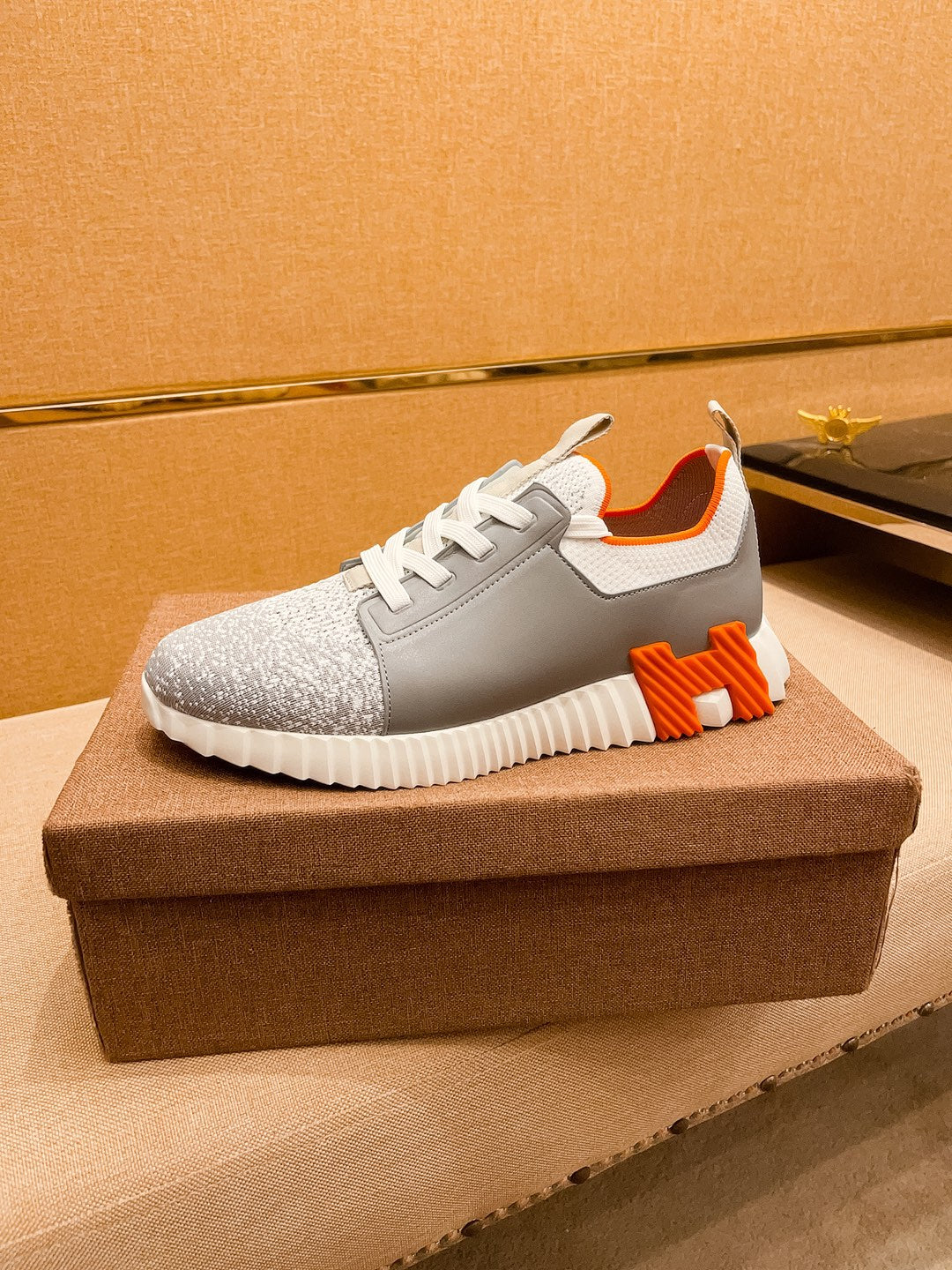 HM Men's Depart Slip-on Sneaker Grey Knit Cowhide 263682