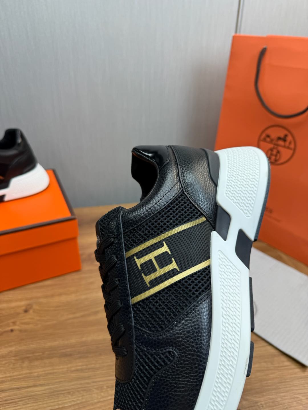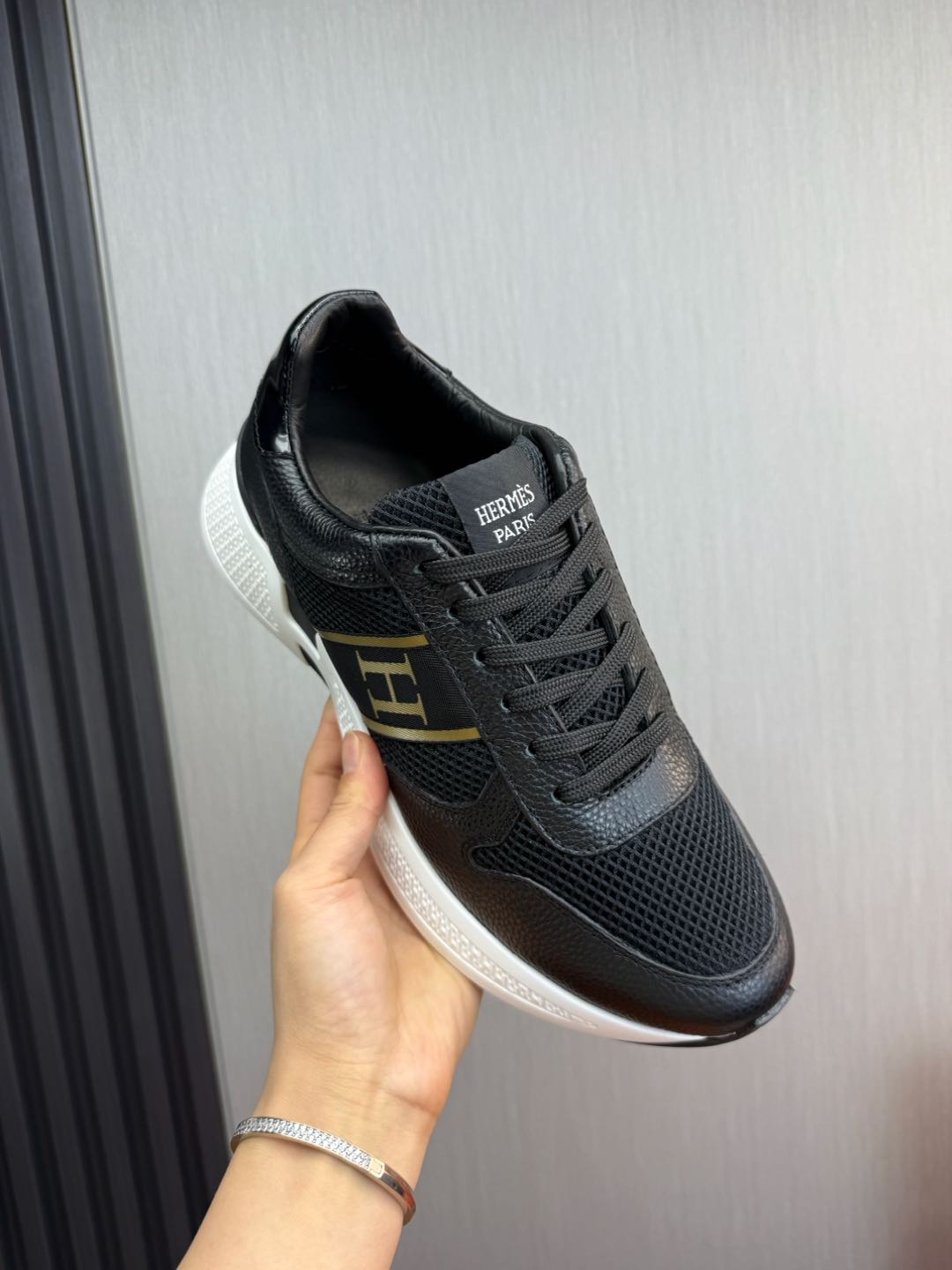 HM Men's Sneaker Black Mesh Cowhide 519225