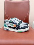 LV Trainer Sneaker Velcro Strap Green Black Cowhide