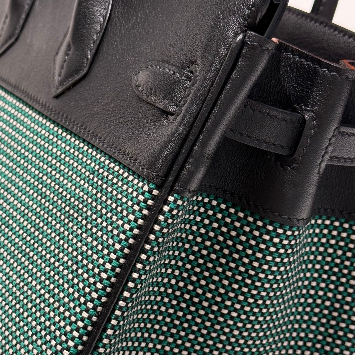 HM Birkin 25cm Black Swift Green White Canvas Silver Hardware