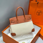 HM Birkin 35cm Gold Swift Leather Beige Canvas Silver Hardware