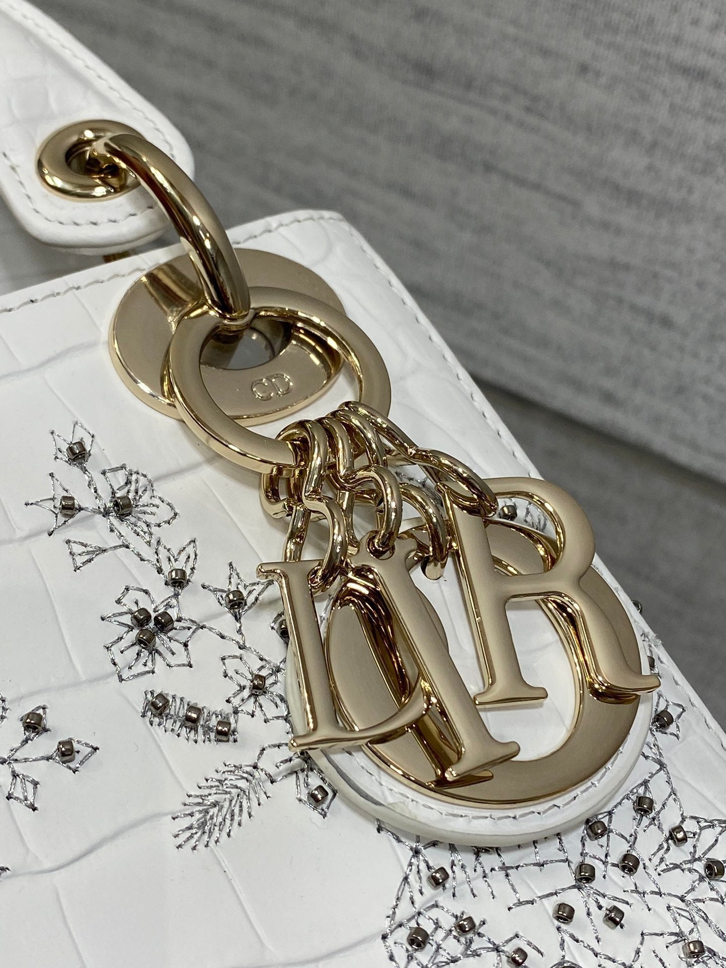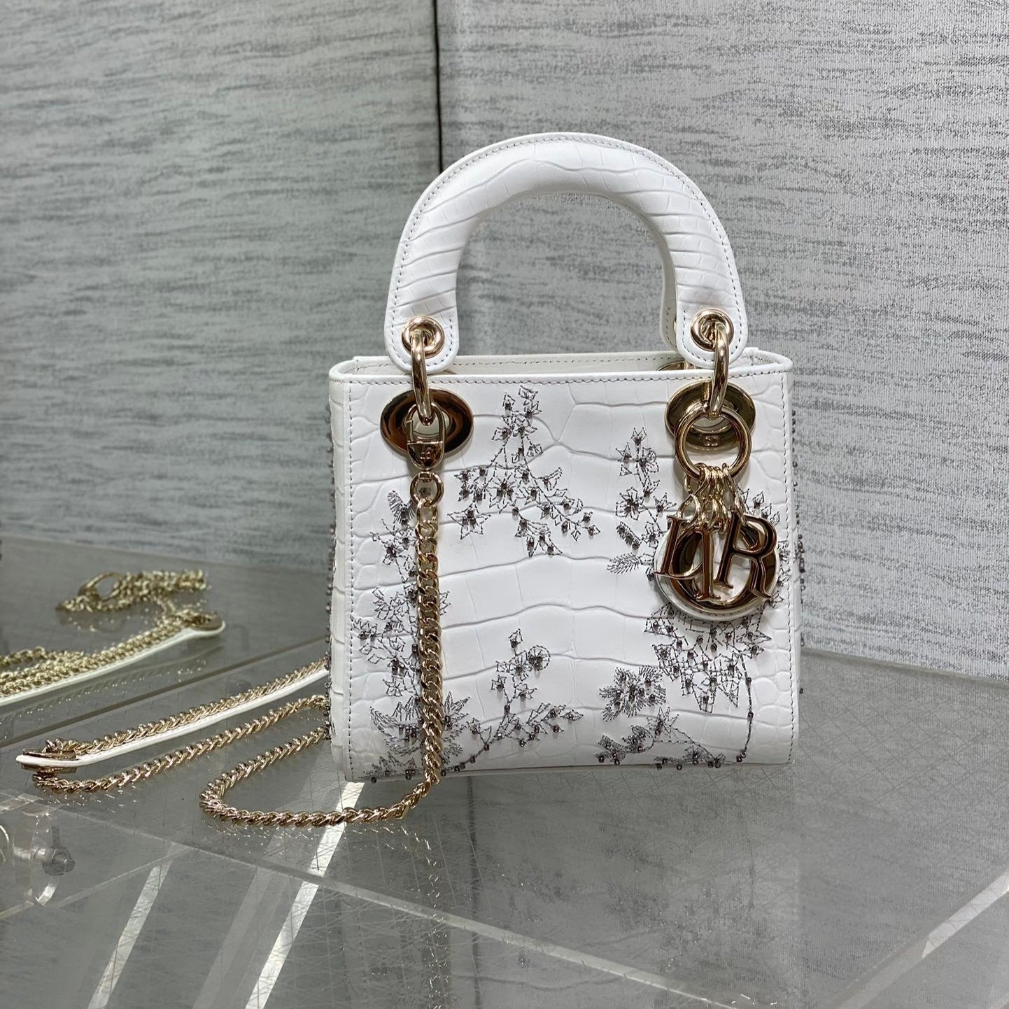 Lady Bag 17cm White Crocodile Leather Light Gold Hardware