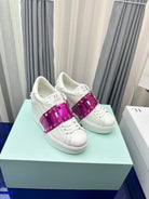 FLATFORM ROCKSTUD UNTITLED SNEAKER IN WHITE MIX MAGENTA PURPLE CALFSKIN