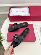 GARAVANI V LOGO SIGNATURE SLIDE IN BLACK RAFFIA AND CALFSKIN