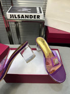 Heeled Sandals 6cm with Crystal Square Buckle Gold and Purple