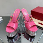 HIGH HEEL SANDAL 14CM IN BRIGHT PINK CALFSKIN AND TRANSPARENT PVC