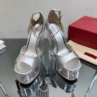 HIGH SANDAL 14CM IN SILVER CALFSKIN AND TRANSPARENT PVC