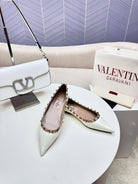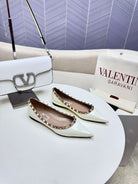 ROCKSTUD FLAT PUMP IN WHITE CALFSKIN