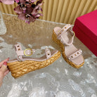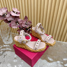 Rockstud Flatform Sandal 75mm In Rose Pink Calfskin And Raffia 102858