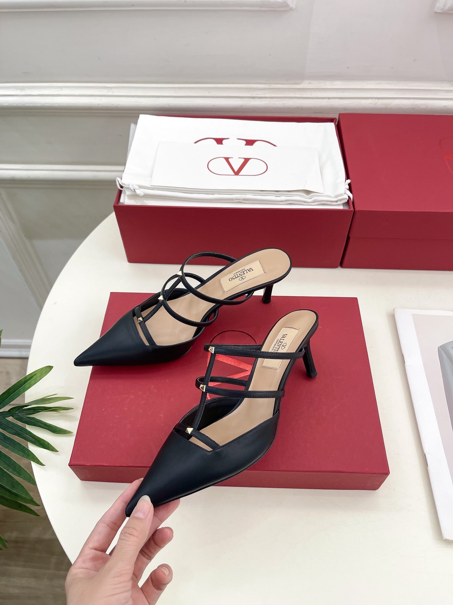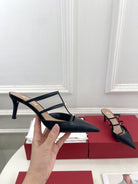 Rockstud Wispy Black Calfskin Mule 60mm