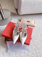Rockstud Wispy Calfskin Mule 65mm Shiny White