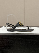 THONG SANDAL IN BLACK CALFSKIN WITH GOLD LOGO