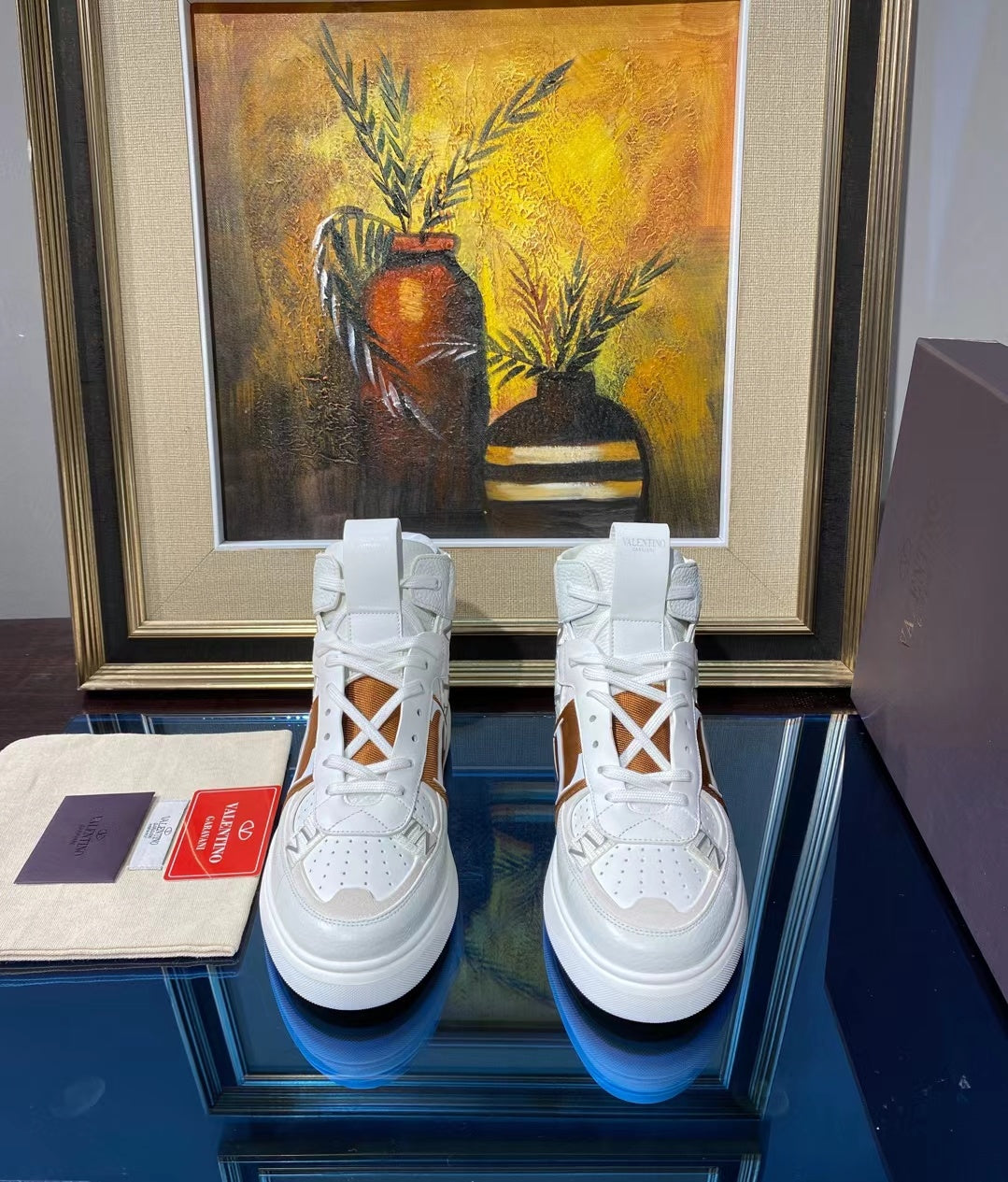 Valenti High Top VL7N White Calfskin Brown Canvas 993746
