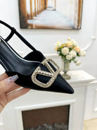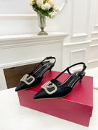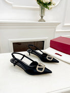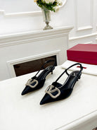 Valentino 25 White Vlogo Signature Slingback Pumps Black Silk 239504